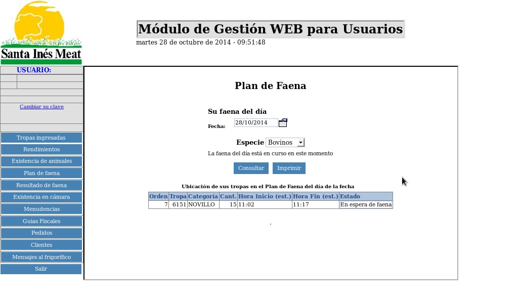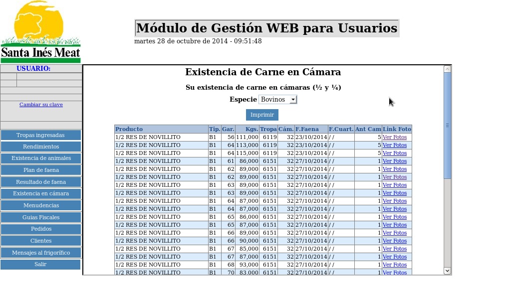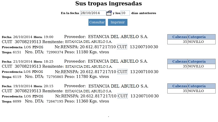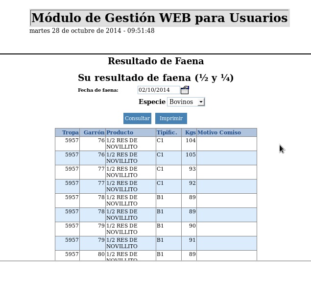 Desde el servicio web usted también podrá consultar todo el proceso de faena de sus animales, de una fecha determinada.